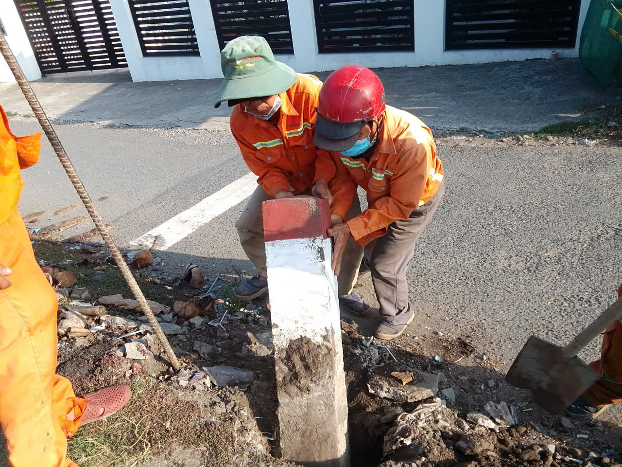 Canh chỉnh cọc tiêu hai bên tuyến